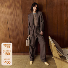 Basic House/百家好高级感灰色九分西装裤女士春季高腰垂感哈伦裤