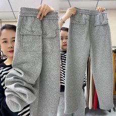 小个子加绒加厚直筒休闲卫裤女秋冬新款高腰显瘦哈伦裤宽松运动裤
