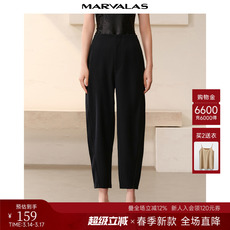 曼德诗简约黑色自然腰休闲裤2026夏季新款纯色弹力收腰哈伦裤长裤