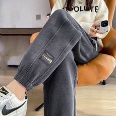 春秋薄款女休闲裤宽松学生纯色束脚运动哈伦裤加绒冬季收口卫裤子