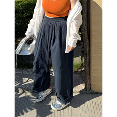 春季女休闲裤松紧腰宽松哈伦裤开叉微弹纯色时尚百搭中腰长裤3X
