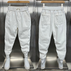 爱居兔夏季脚口翻边设计感时尚牛仔裤哈伦裤