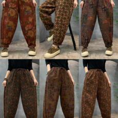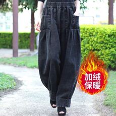 秋冬灯芯绒阔腿哈伦裤女加厚加绒中年妈妈长裤春秋大码宽松休闲裤