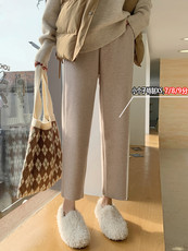 厂家清仓松紧腰女秋冬九分小脚哈伦裤加厚保暖羊毛呢女裤烟管裤
