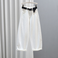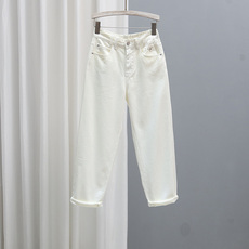 2026春夏簿款时尚牛仔老爹裤女长裤高腰宽松显瘦萝卜裤白色哈伦裤