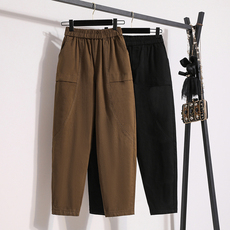 卡其色休闲裤子女春秋高腰显瘦九分裤大码宽松哈伦裤老爹萝卜裤潮