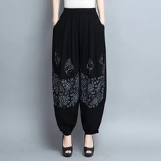亚麻九分裤女裤大码宽松9分裤子春夏休闲萝卜裤薄款亚麻哈伦裤