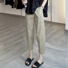 简约舒适!薄款休闲裤女2023新款松紧腰宽松显瘦九分哈伦裤