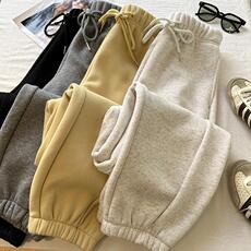 加厚羊羔绒休闲卫裤女秋冬宽松显瘦保暖厚实运动裤纯色束脚哈伦裤