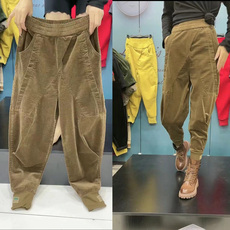 2023年秋冬新款灯芯绒时尚休闲裤女高腰百宽松搭显瘦哈伦裤萝卜裤