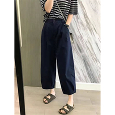 春夏大码200斤哈伦裤九分西装裤直筒高腰小个子休闲纽扣工装裤潮