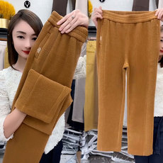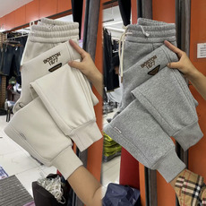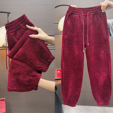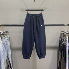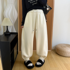简约百搭加厚保暖奥粒绒卫裤女冬季抽绳松紧腰遮肉显瘦束口哈伦裤