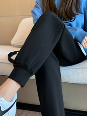 加绒运动裤女秋冬新款加厚卫裤休闲裤宽松束脚哈伦裤保暖外穿棉裤