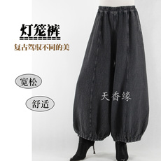 复古文艺宽松棉麻女士灯笼裤时尚减龄显瘦百搭亚麻八分跨裤哈伦裤