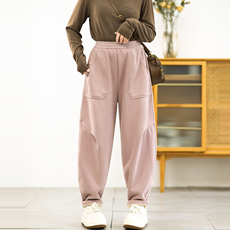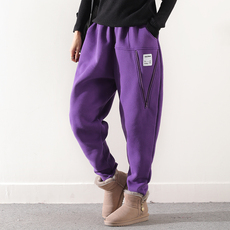紫涵100%纯棉哈伦裤女冬季新款宽松显瘦高腰抽绳休闲裤子萝卜裤子