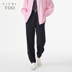 爱居兔春季撞色织带腰头学院风宽松舒适休闲裤哈伦裤女