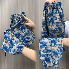 夏季薄款冰丝哈伦裤女九分休闲裤2023新款中年妈妈宽松大码萝卜裤