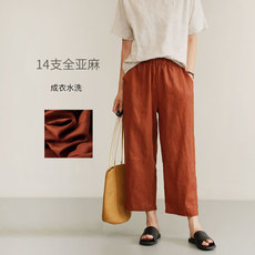 砖红色 14支女士全亚麻阔腿裤 八分哈伦裤 山东网店 夏款女装