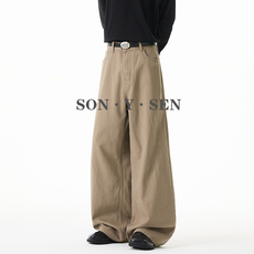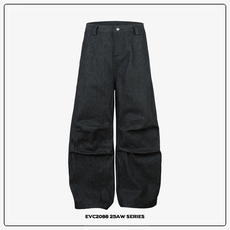 NOFUNNULL美式牛王手擦立体猫须水洗丹宁牛仔裤男宽松A字阔腿长裤