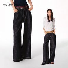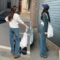 asomesome美式复古宽松阔腿牛仔裤女秋垂感直筒裤藏蓝色休闲裤