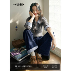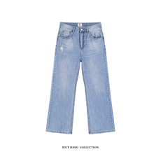 KOGIRL蓝色直筒剪裁显瘦高腰牛仔裤2026新款磨破百搭休闲裤子女