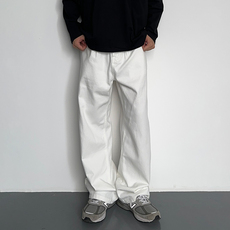 HMN Studio垂坠感白色牛仔裤基础纯色高级感宽松春秋阔腿拖地长裤