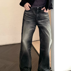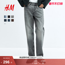 HM男装牛仔裤春季做旧水洗擦色牛仔裤宽松直筒裤腿长裤1228147