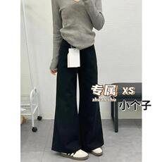小个子黑色直筒垂感牛仔裤女秋冬梨形身材宽松显瘦藏肉阔腿拖地裤