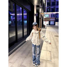 美式高街水洗闪电牛仔裤女春秋2025新款高腰显瘦垂感微喇直筒长裤
