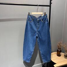 2025春装新款大口袋休闲牛仔裤女胖妹妹大码宽松百搭哈伦裤长裤秋