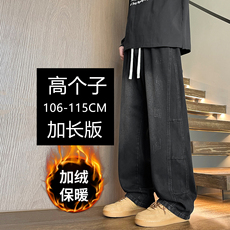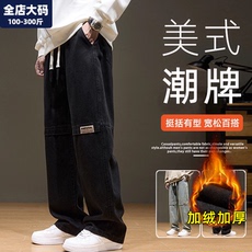 直筒牛仔裤男秋冬季保暖加绒加厚休闲裤子潮胖子加肥加大大码男装