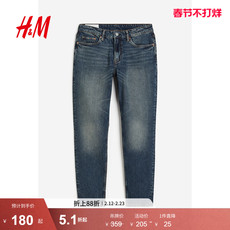 HM男装牛仔裤春季新款合身美式中腰锥形休闲时尚洋气长裤0931747