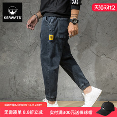 KERWATS牛仔裤男日系潮牌大码百搭小脚哈伦裤胖子青年加大小脚裤