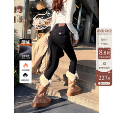 薄绒保暖四面弹力包裹好高腰显瘦紧身小脚黑灰针织仿牛仔裤女秋冬