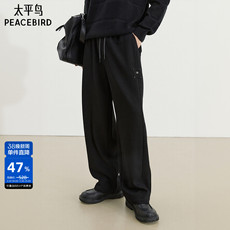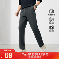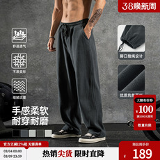 鹿家门春秋新款卫裤弯刀直筒休闲宽松加绒大码男士运动健身长裤子