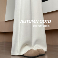 白色裤子女2025新款秋冬季小个子直筒阔腿裤垂坠感休闲米妮运动裤