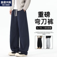 直筒弯刀裤男新款宽松休闲青少年胖子加肥加大大码男装长裤男生