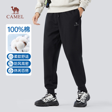 骆驼男装纯棉运动卫裤男士2026春季黑色宽松弹力束脚休闲长裤子