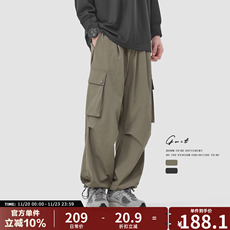 GWIT 美式复古垂感登山户外工装大口袋伞兵裤抽绳束脚休闲裤男