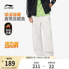 李宁热力裤丨卫裤男新款黑色美式宽松冬季加绒休闲裤直筒运动裤男
