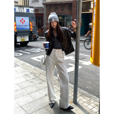 Halo Luu白色直筒牛仔裤女春季2026新款休闲裤窄版显瘦拖地阔腿裤