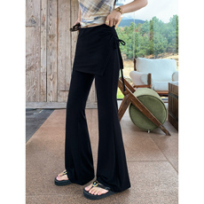 pusumede 塑造腿精 黑色高腰微喇裤女高弹力显瘦直筒休闲喇叭裤