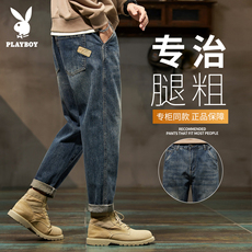 花花公子美式复古牛仔裤男士春夏季新款宽松直筒休闲哈伦九分裤子