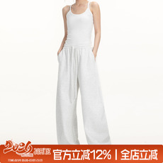 JMJ 美式复古简约基础款阔腿抽绳卫裤男女宽松休闲百搭拖地长裤