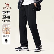 骆驼男装纯棉针织卫裤男士春季黑色宽松直筒休闲运动百搭长裤子