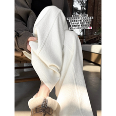 桑蚕丝羊毛阔腿裤女加绒2025秋冬新款白色高腰垂感休闲香蕉直筒裤