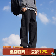 太平鸟男装牛仔裤25冬季新款黑色复古纯棉牛仔长裤质感休闲阔腿