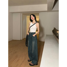 SMIIILE复古水洗牛仔裤女低腰春季新款宽松显瘦阔腿裤直筒休闲裤