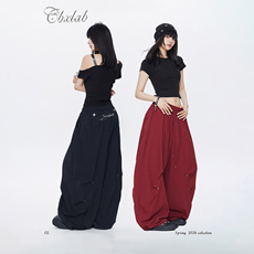 eihey诶嘿古早感拼接撞色显瘦抽绳系带微喇叭简约休闲拖地长裤女