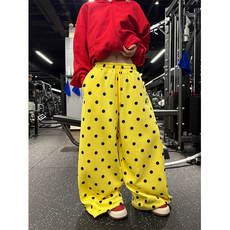 JMJ 美式复古波点满印加绒阔腿卫裤男女宽松休闲百搭直筒拖地长裤